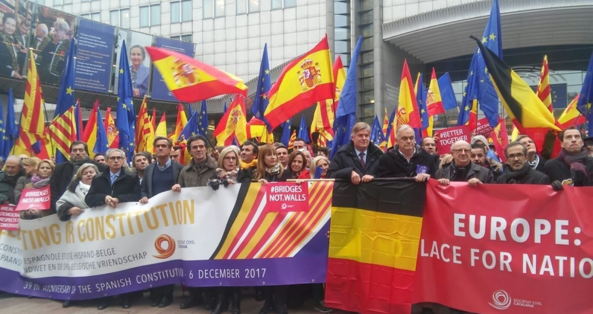 Sociedad Civil Catalana (SCC) ha celebrado este miércoles el 39 aniversario de la Constitución española en una concentración ante la sede del Parlamento Europeo en Bruselas.