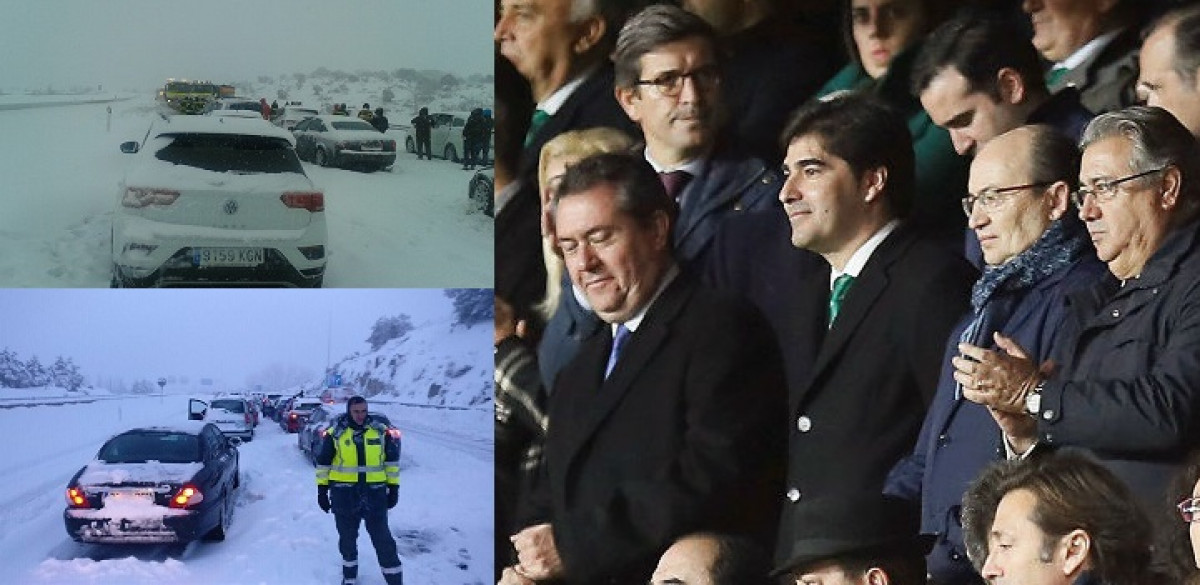 Mientras miles de personas estaban atrapadas por la fuerte nevada en la AP-6 el pasado sábado 6 de enero, el ministro del Interior, Juan Ignacio Zoido, disfrutaba del partido Sevilla-Betis desde el palco de honor del estadio Sánchez-Pizjuán.