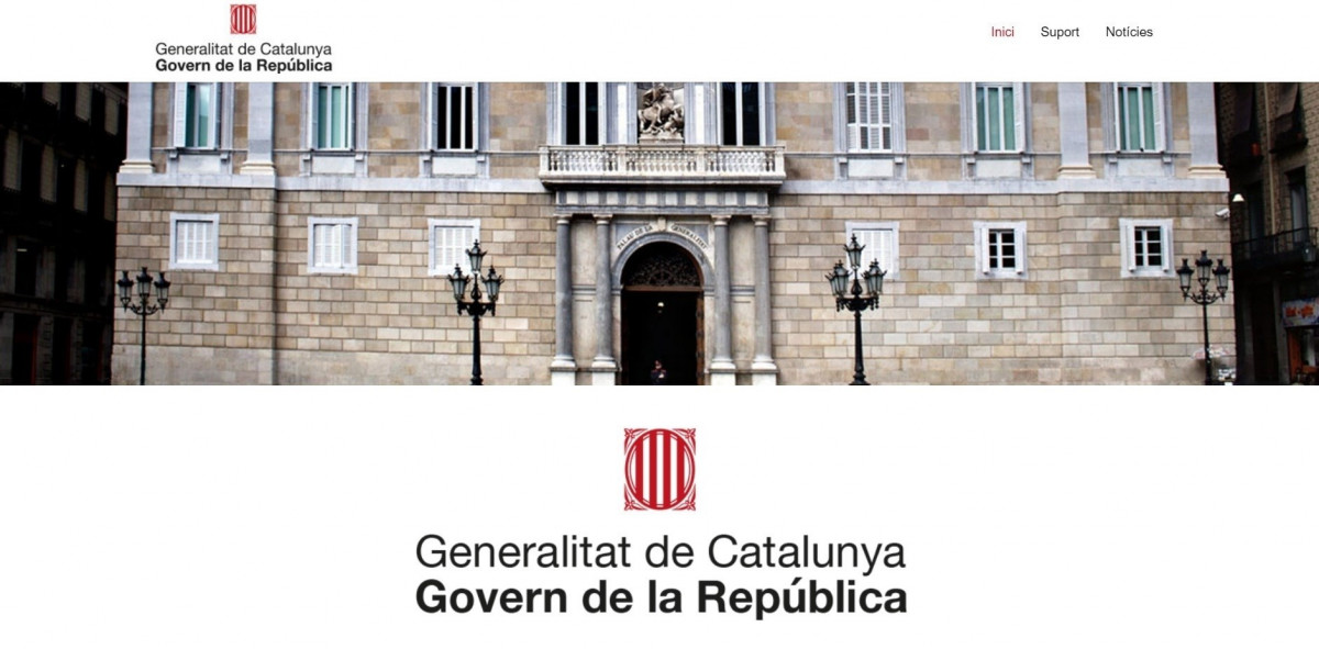 En la nueva página aparece el logo oficial del Govern con el nombre Generalitat de Catalunya. Govern de la República, y se recoge el mismo mensaje que aparecía en la anterior, que es que la asociación de juristas Drets "dará cobertura legal a la Oficina del Govern legítimo de Catalunya".