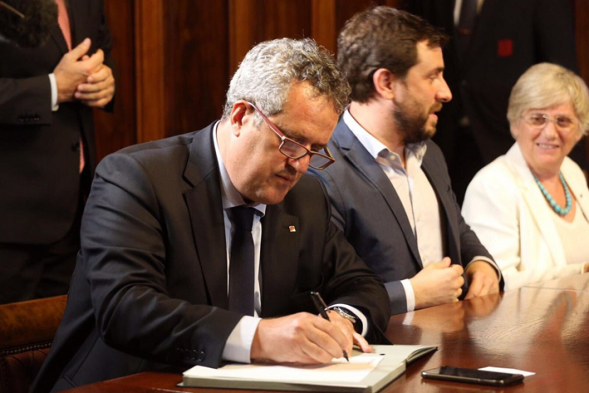 Forn firmando el decreto de convocatoria del 1-O.