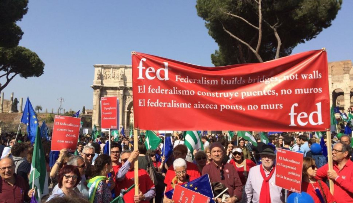 Federalistes d'Esquerres en la Marcha por Europa, en Roma, el pasado marzo