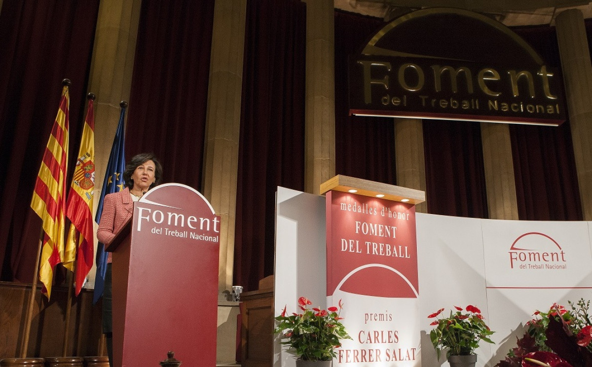 Por su parte, el presidente de Fomento del Trabajo, Joaquim Gay de Montellà, le ha entregado la Medalla de Honor de los Premios Carles Ferrer Salat que la patronal entrega anualmente, destacando que desde 2014 Ana Botín "marca el rumbo" de Banco Santander, el líder de la banca española.